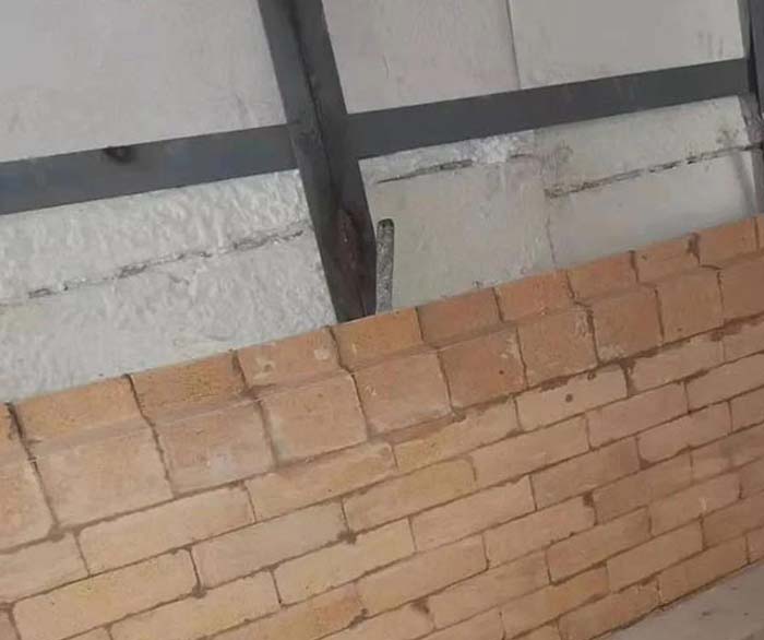 直段耐火磚首先在沖擊區(qū)砌筑TZB耐火磚,然后在沖擊區(qū)砌筑耐火磚,然后在非沖擊區(qū)砌筑耐火磚。通過切割沖擊區(qū)的耐火磚,沖擊區(qū)的耐火磚與非沖擊區(qū)的耐火磚之間形成狹窄的膨脹縫。另外,所有的磚縫都需要錯開。