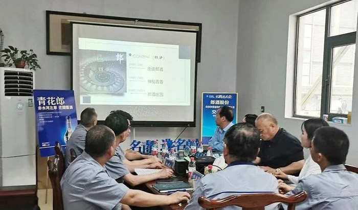 隨后,四川郎酒股份有限公司銷售經(jīng)理結合PPT為參會人員講解了郎酒集團概況,著重介紹了郎酒嚴密的制作過程,以及四川郎酒集團作為一個全國白酒品質(zhì),對百年"回沙郎酒"的傳承與創(chuàng)新,對白酒文化的繼承與發(fā)展,以及郎酒集團未來的戰(zhàn)略定位與分析,和作為中國兩大醬香白酒之一青花郎酒的生產(chǎn)工藝和品質(zhì)戰(zhàn)略,并播放了郎酒集團宣傳片。會后,張建濤代表郎酒股份向榮盛科技集團贈送了青花郎酒。